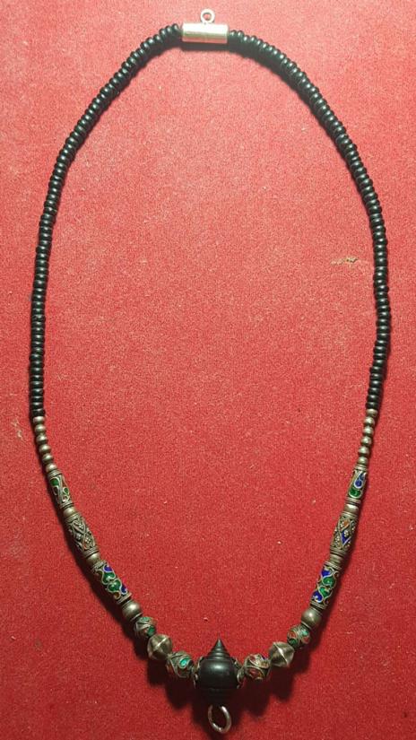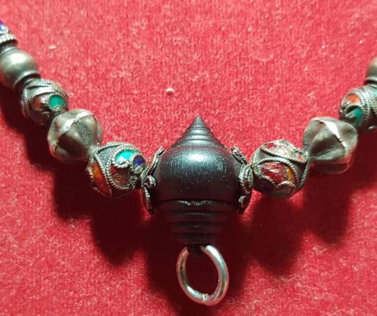 ชื่อพระเครื่อง สร้อยคอกะลาตาเดียวผสมเม็ดเงินลงยาสุโขทัย ยาว 56 cm.
