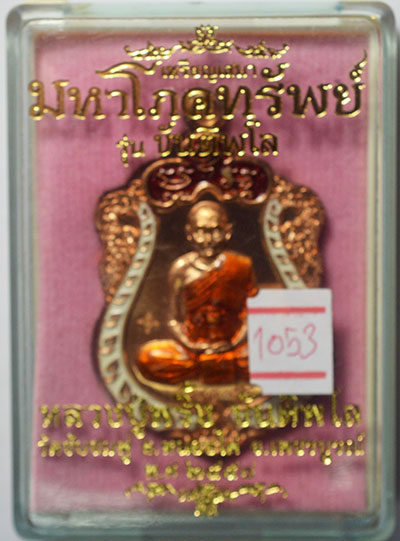 เหรียญมหาโภคทรัพย์ รุ่น ขันติพโล 2558 หลวงปู่พริ้ง ขันติพโล วัดซับชมพู่ เนื้อทองแดงผิวไฟ ลงยา โค๊ด เลข 1053