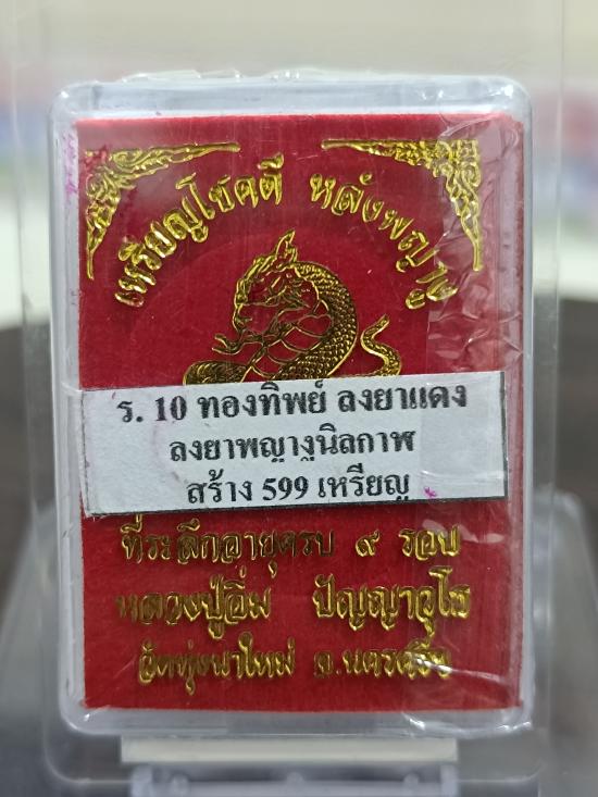 @@ เหรียญโชคดี หลังพญางู วาระ ๙ รอบ หลวงปู่อิ่ม ปญฺญาวุโธ วัดทุ่งนาใหม่ จ.นครศรีธรรมราช (ขนาดเหรียญ 3.0 ซม.) เนื้อทองทิพย์ลงยาแดง ลงยาพญางูเพลิง ซีลเดิม ลุ้นเลขสวย/เลขมงคลครับ (3)