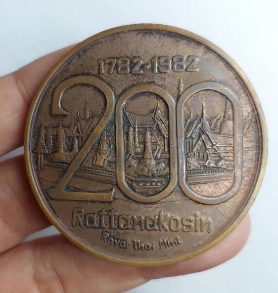 เหรียญบาตรน้ำมนต์ 5 CM. " ที่ระลึกสมโภชกรุงรัตนโกสินทร์ 200 ปี " เนื้อบรอนซ์ พ.ศ.2525 |