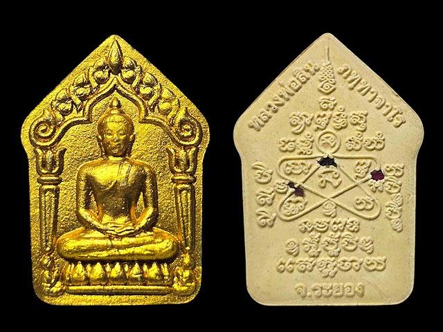 ***พระขุนแผนบ้านค่าย พรายจินดามณี พิมพ์ใหญ่ เนื้อขาวทาทอง หลังโรยพลอย หลวงพ่อสิน วัดละหารใหญ่ จ.ระยอง***