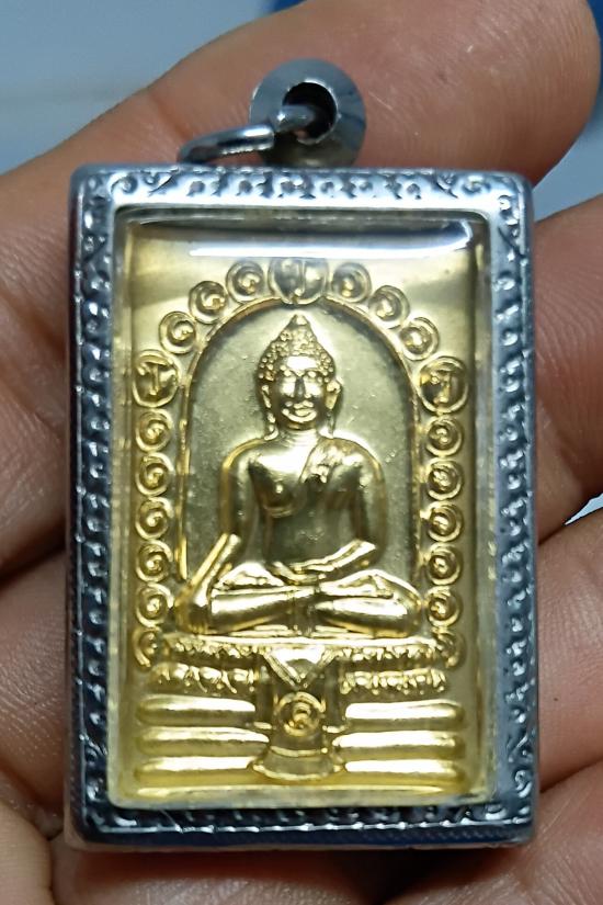 เหรียญแสตมป์ พระพุทธสิหิงค์ เนื้อกะไหล่ทอง เลี่ยมกรอบสแตนเลสสวยพร้อมบูชา |