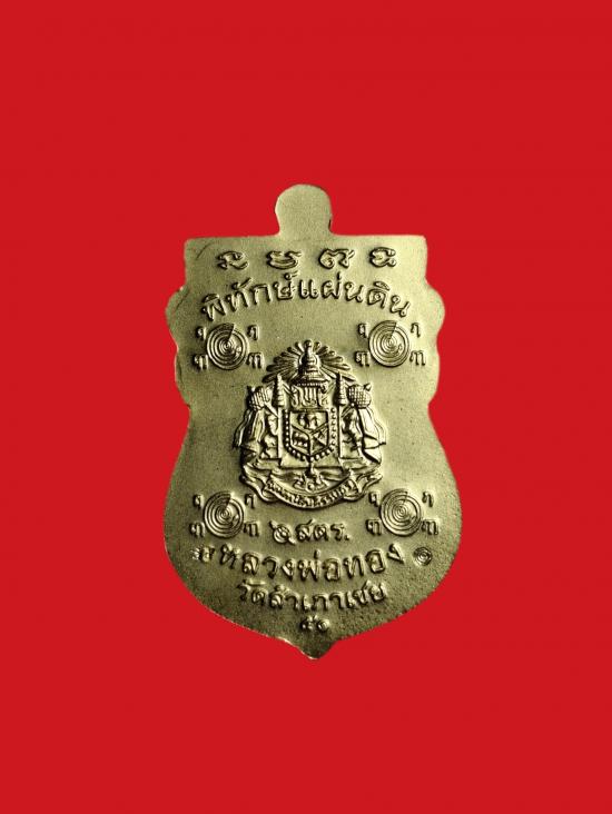 รายละเอียด เคาะแรก เหรียญเสมาหัวโตพิทักษ์แผ่นดินหัวขีดพ่นทรายทอง พร้อมกล่องเดิม