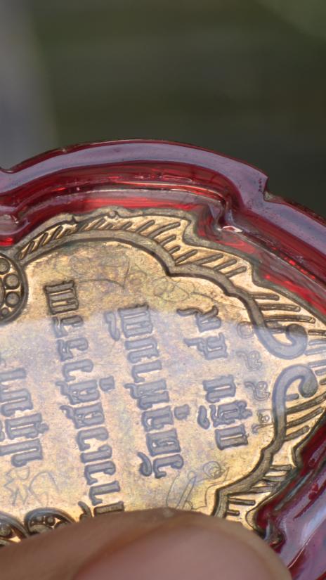 วัดความแรงที่ 99 ...เหรียญกฐินปี 59 ใบสาเกชนวนทองแดง เลข 2881 พร้อมจารมือหลวงพ่ออิฏฐ์เต็มสูตร หลังจารใหญ่-จารอักขระยันต์เฑาะเข้มขลัง |