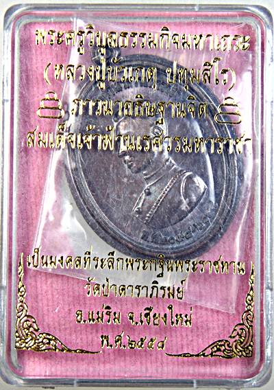 เหรียญสมเด็จเจ้าฟ้านเรศวรมหาราชา หลวงปู่บัวเกตุ ปทุมสิโร ที่ระลึก กฐินพระราชทานวัดป่าดาราภิรมย์ เชียงใหม่ พ. ศ. 2558 |