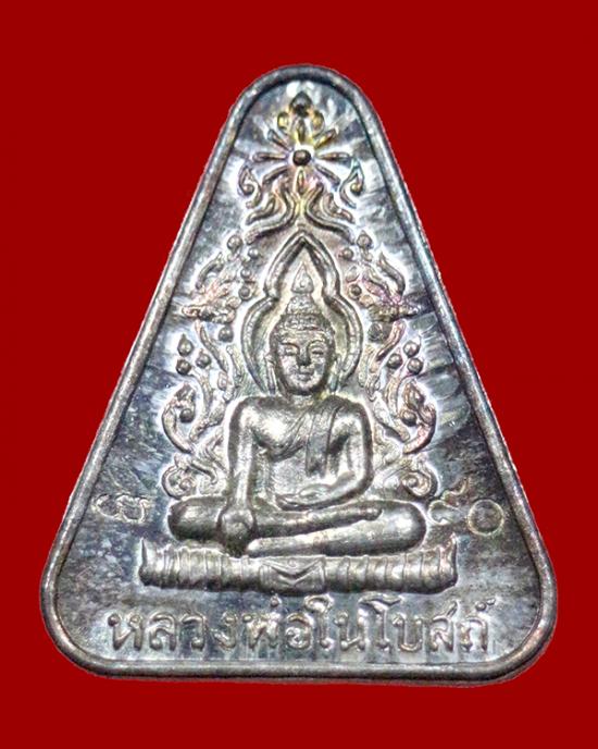 เหรียญหลวงพ่อในโบสถ์ หลวงพ่อหยอด วัดแก้วเจริญ เนื้อเงิน เลข 90