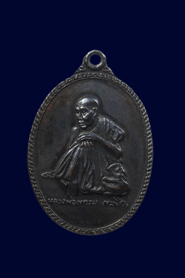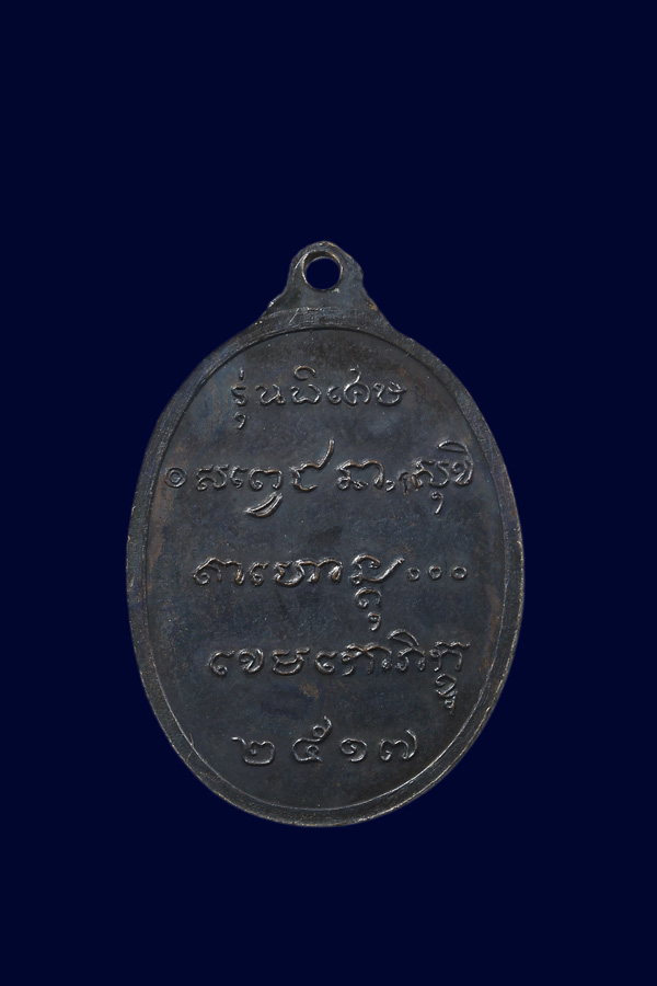 เหรียญนั่งหนาว หลวงพ่อเกษม เขมโก ปี 2517 เนื้อทองแดง เลี่ยมเก่า |