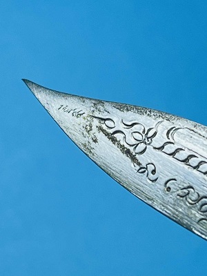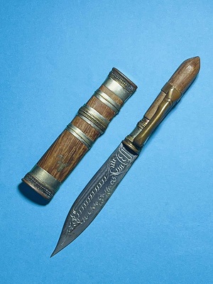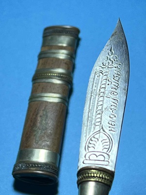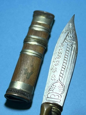ขนาดยาว 5 นิ้ว ด้ามไม้ฝักไม้ มีจารหมึกเก่าที่ฝัก..รับประกันความแท้..