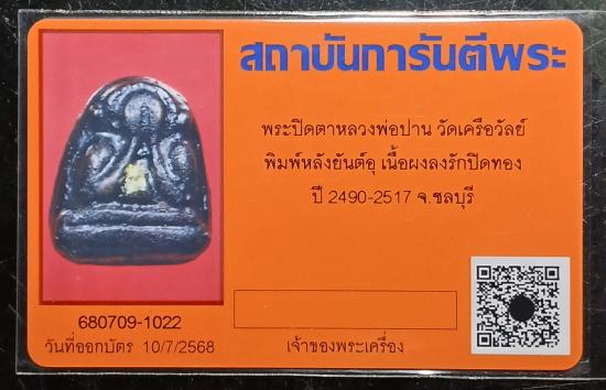 เคาะเดียวต่ำกว่าทุน...ปิดตาหลวงพ่อปาน วัดเครือวัลย์ ชลบุรี พิมพ์โบราณหลังยันต์อุ (หายาก) เนื้อผงลงรักปิดทอง ปี 2490-2517 พระสวยเดิมๆครับ พร้อมบัตรรับรองจากทางเว็บ |