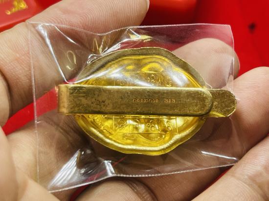 เหรียญพระราหู วัดทุ่งม่านใต้ ครูบากฤษดา ปลุกเสก เหรียญแจกกรรมการ ทรงเข็มกลัด เนื้อทองทิพย์ เลข313 |