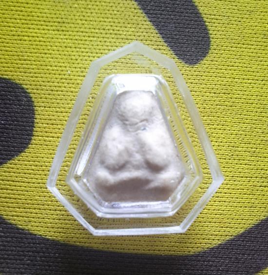 พระปิดตาแป้งเสก พิมพ์หกเหลี่ยม เนื้อผงพุทธคุณคลุกแป้งสด หลังกดโค้ด ปีพ.ศ.2527 สภาพสวย เสียดายด้านหลังมีรอยกระเทาะตอนเลี่ยมพลาสติก สร้างน้อย พุทธคุณดีมีครบทุกด้าน