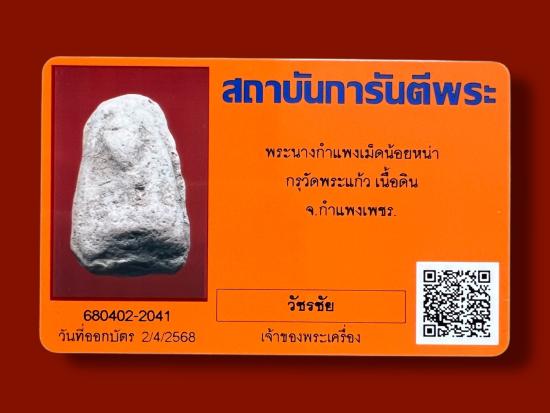 พระเม็ดน้อยหน่า กรุวัดพระแก้ว กำแพงเพชร สภาพน่ารักเดิมๆ มีคราบนวลกรุและแร่ว่านดอกมะขาม รารัก พระไม่ผ่านการใช้ เหมาะสำหรับผู้ที่ชอบสะสมไม่ควรพลาด สำหรับพุทธคุณเมตตาโชคลาภ และมีการเล่าขานมาแต่โบราณว่า ใครได้ครอบครอง"มีกูไว้ไม่มีจน" นอนมาในกรุเดียวกับพระซุ้มกอ