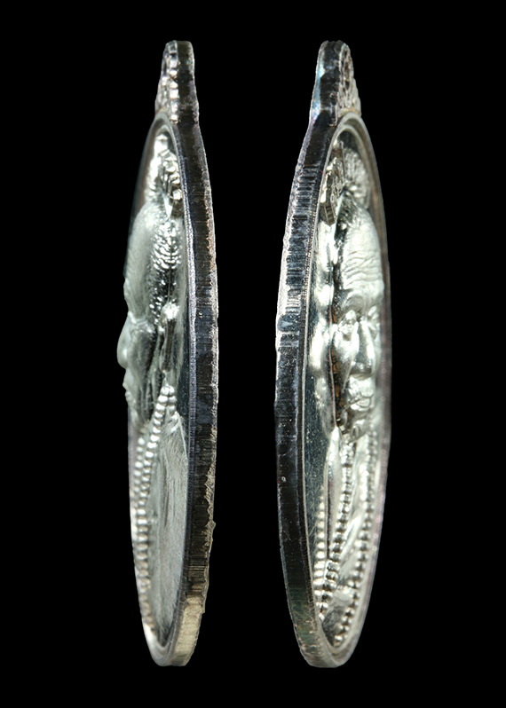เหรียญหันข้างครึ่งองค์ รุ่น สมปรารถนา ( รุ่นแรก ) หลวงปู่เขี ยน ปุญญกาโม สำนักสงฆ์ป่าช้าบ้านโพนสิม จ.อุบลราชธานี พ.ศ.2559 เนื้อเงิน ตอกโค๊ต ตอกเลข สภาพเหรียญสวยพร้อมกล่อง