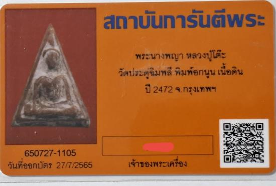 วัดใจเคาะแรก นางพญารุ่นแรก หลวงปู่โต๊ะ วัดประดู่ฉิมพลี เนื้อดินพิมพ์อกนูน สร้างปี2472 สภาพสมบูรณ์ไม่หักไม่ซ่อม พร้อมบัตรรับรองจี |