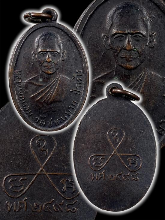 เหรียญรุ่นแรกหลวงพ่อหอม วัดชากหมาก จ.ระยอง บล็อคเสริม เนื้อทองแดงรมดำ |