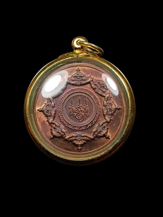 เหรียญปิดตาพังพระกาฬ เทวาลัยกุยบุรี เนื้อทองแดง พร้อมเลี่ยมกรอบอิตาลีแบบผ่าหวาาย มีรอยแขวนมาบ้างตามสภาพ |