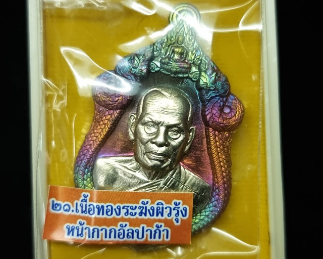 เหรียญเจ้าสัว หลวงพ่อพัฒน์ วัดห้วยด้วน นครสวรรค์ รายการที่ ๑๙. เนื้อทองระฆังผิวรุ้งหน้ากากอัลปาก้า ซิลส์เดิม กล่องเดิม โค๊ดเลข ๙๗๓๙