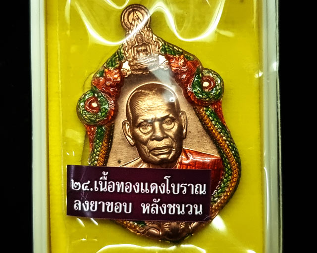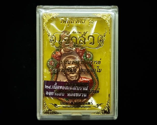 เหรียญเจ้าสัว หลวงพ่อพัฒน์ วัดห้วยด้วน นครสวรรค์ รายการที่ ๒๔. เนื้อทองแดงโบราณลงยาขอบ หลังชนวน ซิลส์เดิม กล่องเดิม โค๊ดเลข ๒๖๗๒๕