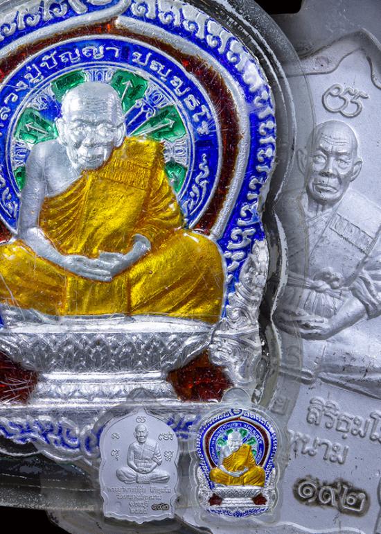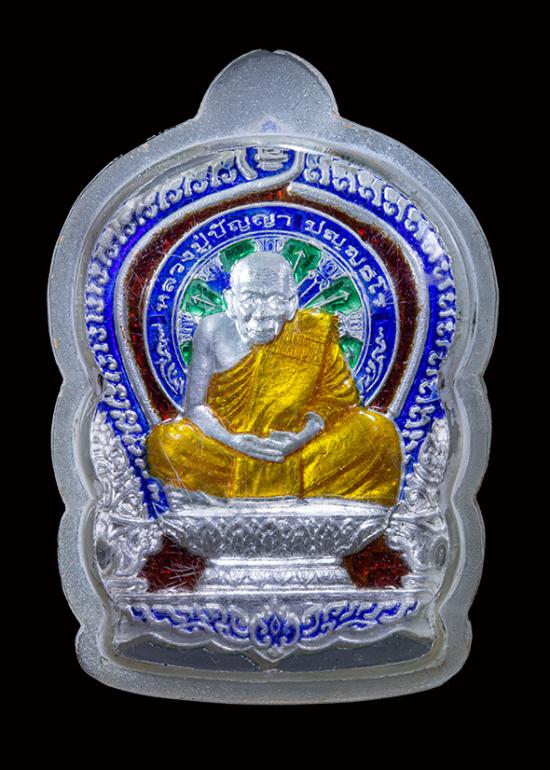เหรียญนั่งพาน หลวงปู่ปัญญา วัดหนองผักหนาม จ.ชลบุรี ปี2554 " ด้านหลังพระอาจารย์ชัยเจ้าอาวาส " เนื้อเงินลงยาสามสี หมายเลข 192 สร้างจำนวน 299 องค์เอามาลงขายแบ่งปันในเว็ป วัดใจเท่าไหนเท่านั้น พิจารณาให้ชอ