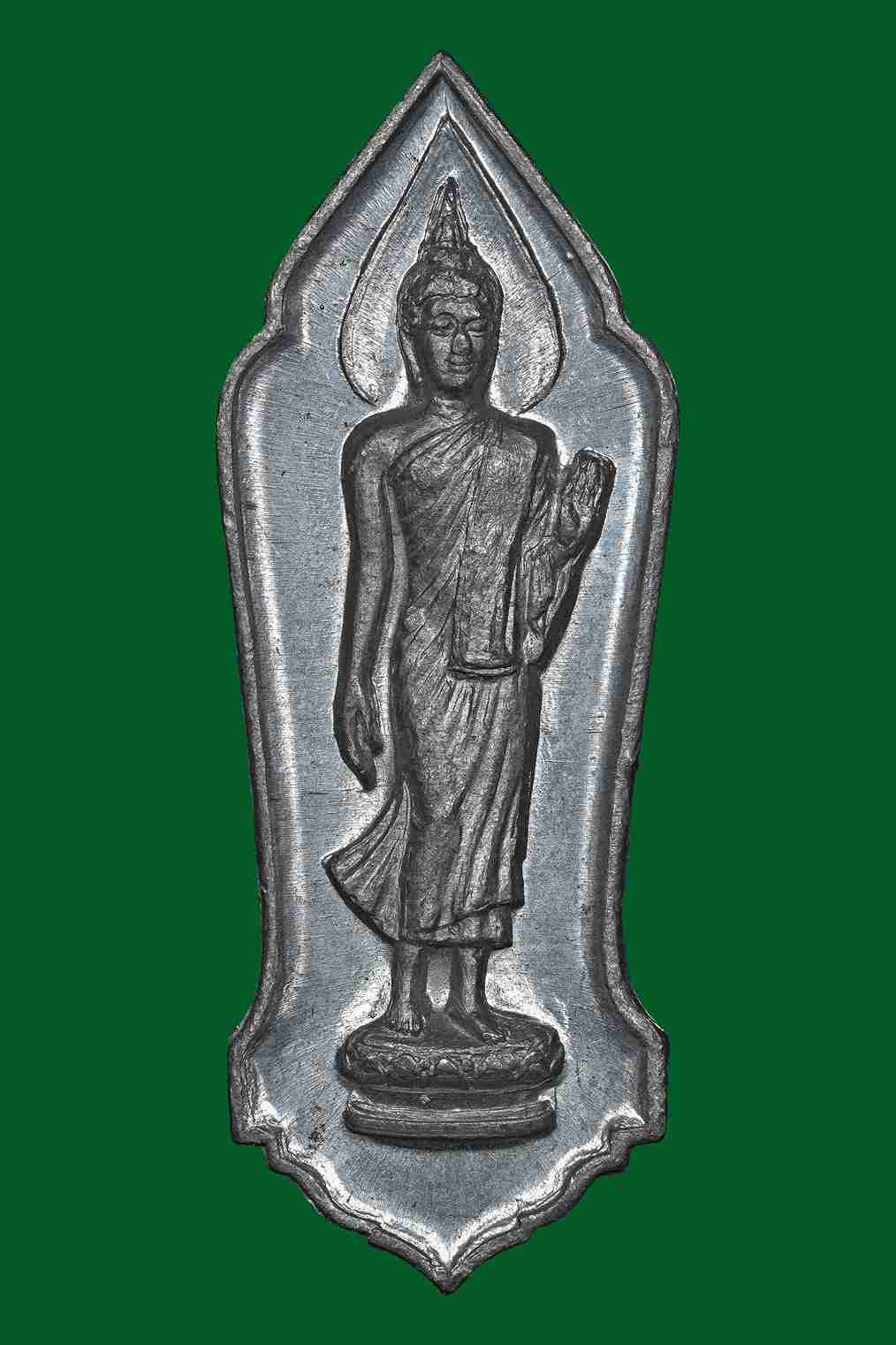 (((วัดใจ)))พระลีลา 25 พุทธศตวรรษ ปี พ.ศ.2500 เนื้อชินตะกั่ว บล็อคสังฆาฏิจุด