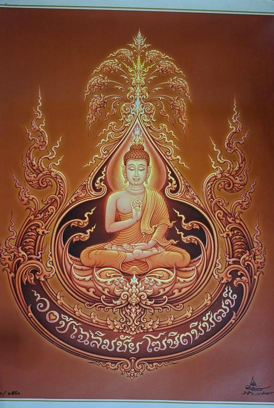 | รายละเอียด | กราบขออนุญาตท่าน อ.เฉลิมชัย โฆษิตพิพัฒน์ นำเสนอภาพพิมพ์กระดาษ "พระพุทธประทานพร" ที่ระลึกวาระสำคัญในวันครบรอบ 60 ปี อาจารย์เฉลิมชัย ปี 2558 หมายเลข ๓๗๒/๑๕๐๐ ขนาดภาพ 69*99 ซม. พร้อมกระบอกใส่ภาพ