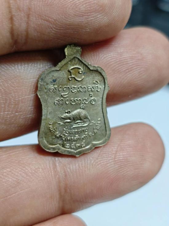 เหรียญแจกทาน หลวงพ่อเกษม เขมโก สำนักสุสานไตรลักษณ์ จ.ลำปาง ปี 2538 เนื้อทองเหลือง หลังหนู + ตอกโค๊ต