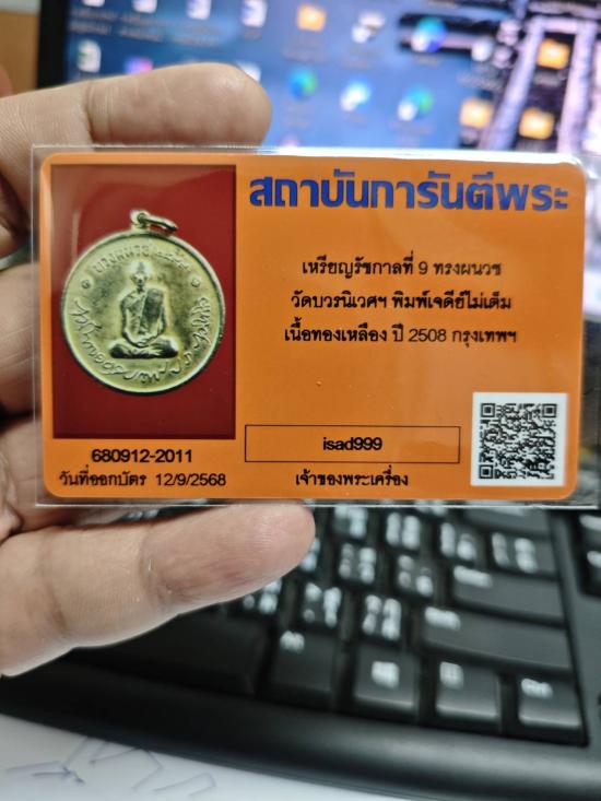 เหรียญทรงผนวช 2508 พิมพ์เจดีย์ไม่เต็ม เนื้อฝาบาตร ในหลวงรัชกาลที่9 |