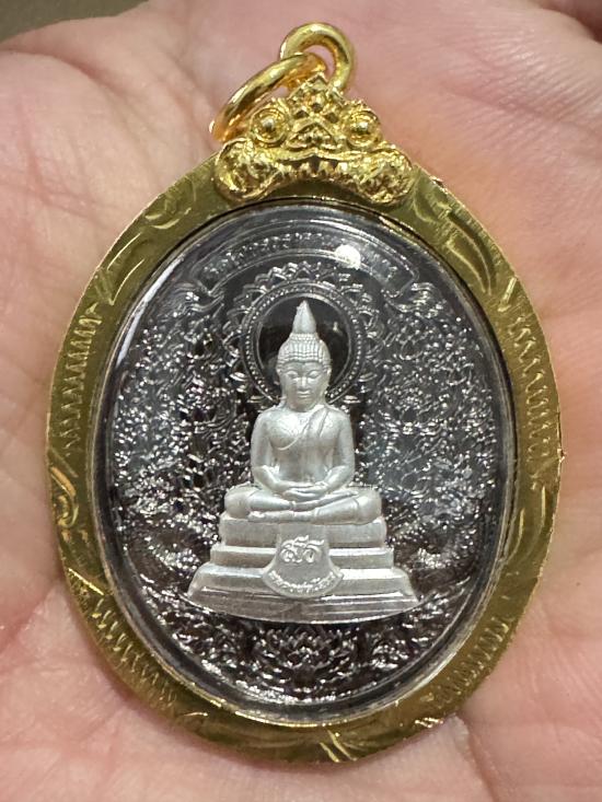 เหรียญหลวงพ่อโสธร รุ่นประวัติศาสตร์ครบรอบ 255 ปี เนื้อชุบแบล็คโรเดียมหน้ากากเงินเลี่ยมกรอบทอง(ทองไม่แท้) หมายเลขตอง 555 |