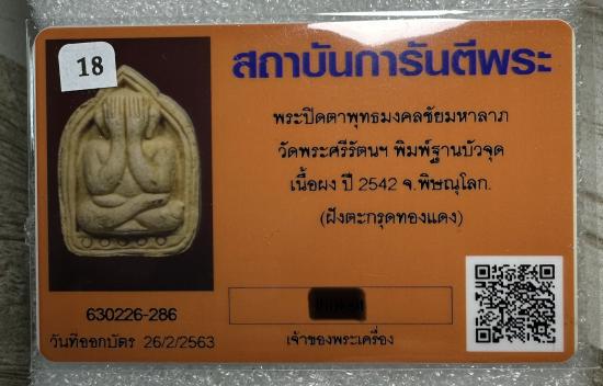 พระปิดตาพระพุทธมงคลชัยมหาลาภ ปี 42 หลวงปู่หมุนปลุกเสก ฝังตะกรุดจักรพรรดิ์ พิมพ์บัวตุ่ม กล่องเดิม (พร้อมบัตรรับรองครับ) |