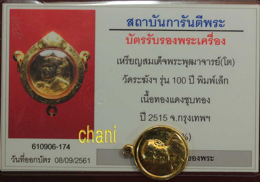 เหรียญ สมเด็จพระพุฒาจารย์โต วัดระฆังฯ รุ่น100ปี พิมพ์เล็ก เนื้ิอทองแดงชุบทอง ปี2515 จ.กรุงเทพฯ สภาพสวยมาก พร้อมบัตรรับรองพระแท้จากจีพระอุ่นใจได้ ไม่ต้องลุ้นค่ะ