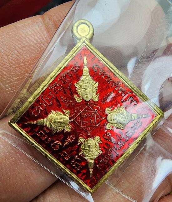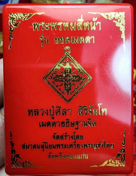 พระพรหมสี่หน้า รุ่นยอดเมตตา หลวงปู่ศิลา สิริจันโท จ.กาฬสินธุ์ เนื้อฝาบาตรลงยาแดง เบอร์ 2634 |