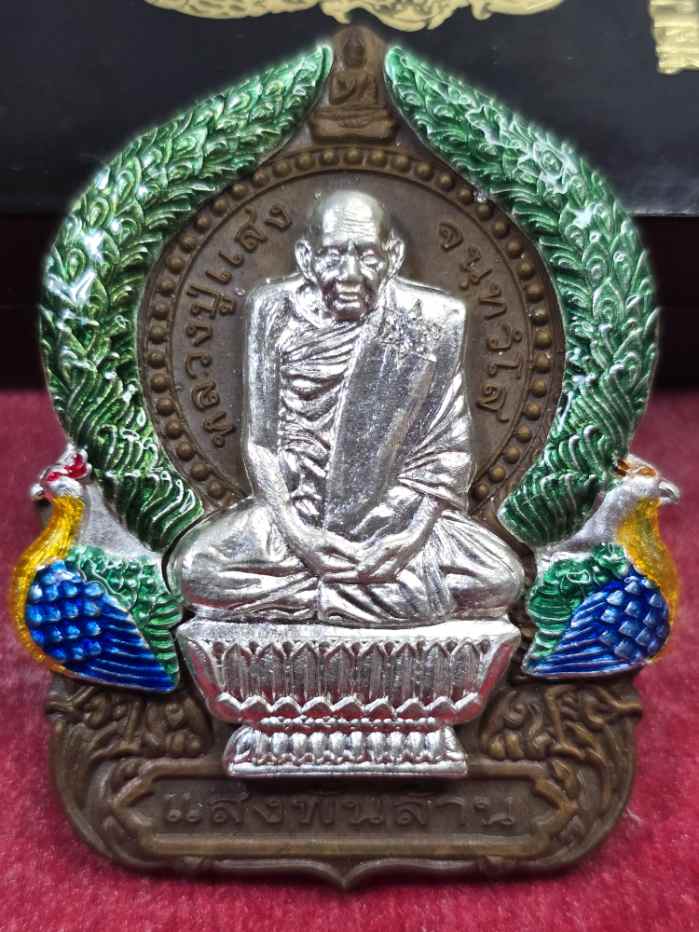 นั่งพานแสงพันล้าน เนื้อนวะโลหะหน้ากากเงินฝังพลอย เลข 354 แยกชุดกรรมการ หลวงปู่แสง วัดโพธิ์ชัย ปี 62 พร้อมกล่องเดิม |