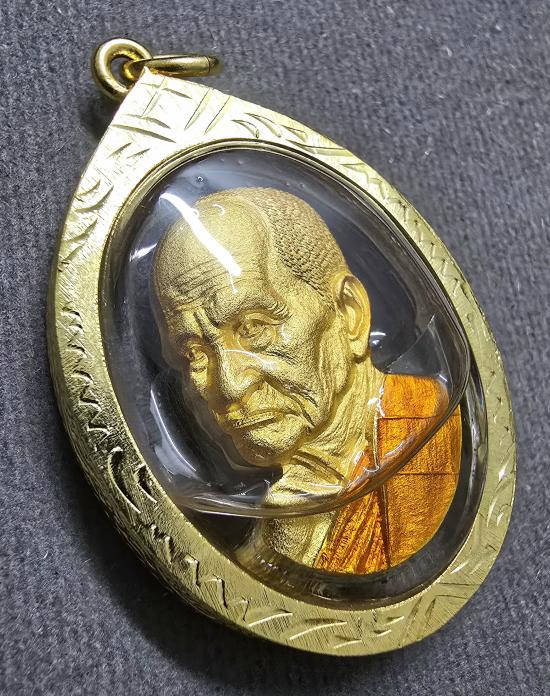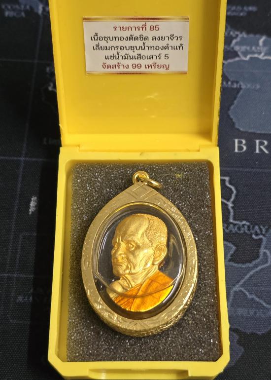 เนื้อชุบทองตัดชิด ลงยาจีวร เลี่ยมกรอบชุบน้ำทองคำแท้ แช่น้ำมันเสือเสาร์๕