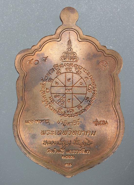 เหรียญเสมา EOD หลวงพ่อคูณ วัดบ้านไร่ รุ่นปาฏิหาริย์ EOD ปี 2556 เนื้อมหาชนวน (แจกทหาร) หมายเลข 408 สร้าง 999 เหรียญ