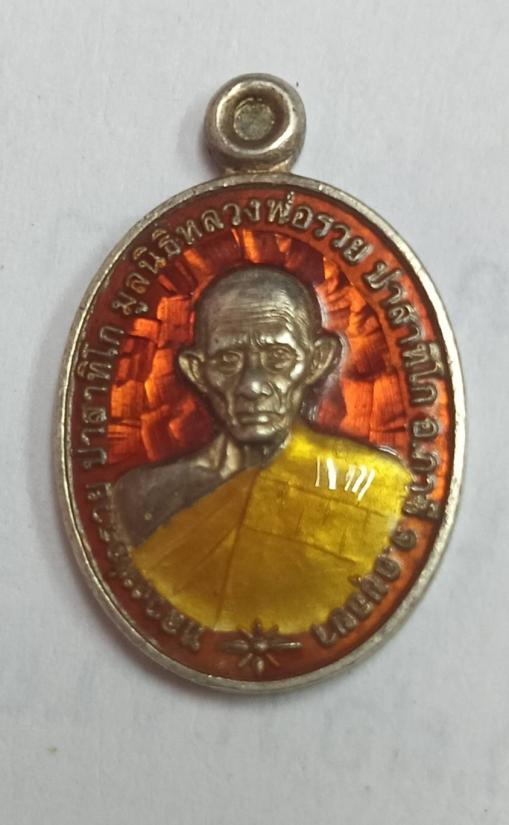 เหรียญเม็ดแตง เนื้อเงินลงยาแดง หลวงพ่อรวย วัดตะโก ปี พ.ศ.2562 รุ่นรวยชนะจน