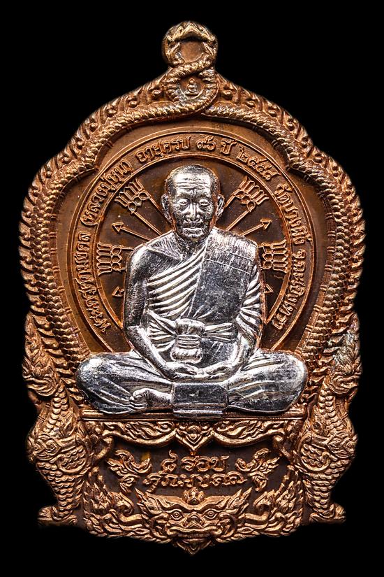 เหรียญ 8 รอบ ศุภมงคล หลวงปู่หุน วัดบางผึ้ง อำเภอบางปะกง จังหวัดฉะเชิงเทรา สำเร็จ สมปรารถนา ร่ำรวย เนื้อทองแดงหน้ากากเงิน ปี ๒๕๕๘ ด้านหลังตอกโค๊ด หมายเลข ๕๖๘ (( แดงวัดใจ 120 ))