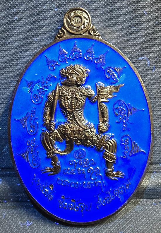 เหรียญหนุมาน"โชคเหนือเมฆ" หลวงปู่มหาศิลา สิริจันโท เมตตาอธิฐานจิตและเขียนอักขระยันต์ให้ จัดสร้างโดย กรมทหารพรานที่ 26 (ค่ายปักธงชัย) เนื้อตะปูสังขวานร ลงยาน้ำเงิน เรืองแสง ด้านหลังฝังตระกรุดเสก หมายเ |