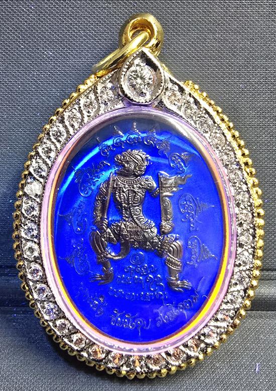 เนื้อตะปูสังขวานร ลงยาน้ำเงิน เรืองแสง ด้านหลังฝังตระกรุดเสก