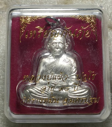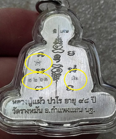 เหรียญกันภัย หลวงปู่แผ้ว วัดรางหมัน จ.นครปฐม อายุ 98 ปี พ.ศ. 2563 เนื้อเงิน ตอก 2 โค๊ต ตอกเลข สภาพสวยกริ๊บเลี่ยมกันน้ำพร้อม กล่องเดิม