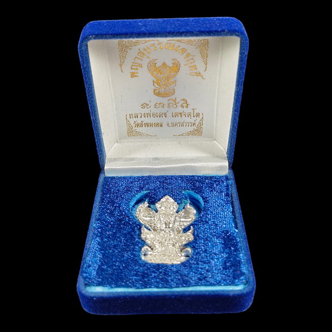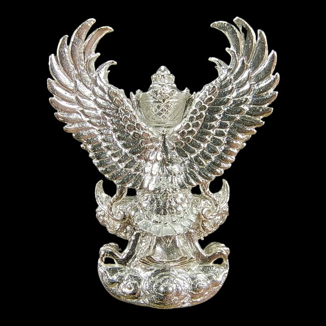 พญาครุฑ รุ่น พญาสุบรรณเตชฤทธิ์ เนื้อเงิน โค๊ต เฮง หมายเลข ๗๕ พร้อมกล่องกมะหยี่ จำนวนการสร้าง ๙๙ องค์ ราคาจอง 3500 บาท
