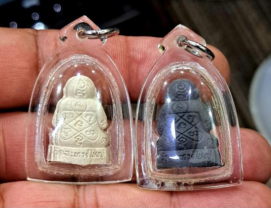 พระปิดตา รุ่น 1 หลวงปู่สิน วัดละหารใหญ่ ปี2559 ฉ ลองสิริอายุวัฒนมงคล ติดเส้นเกษา 2 องค์พร้อมเลี่ยมพลาสติกอย่างดี เนื้อขาวเนื้อดำ