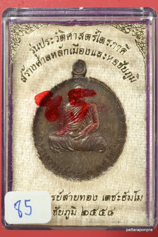 เหรียญหลวงพ่อสายทอง รุ่นไตรภาคี ปี 2558 เนื้อทองแดง โค๊ต๙ หมายเลข 85 แยกจากชุดกรรมการ |
