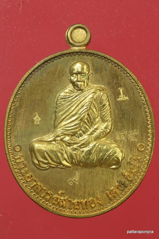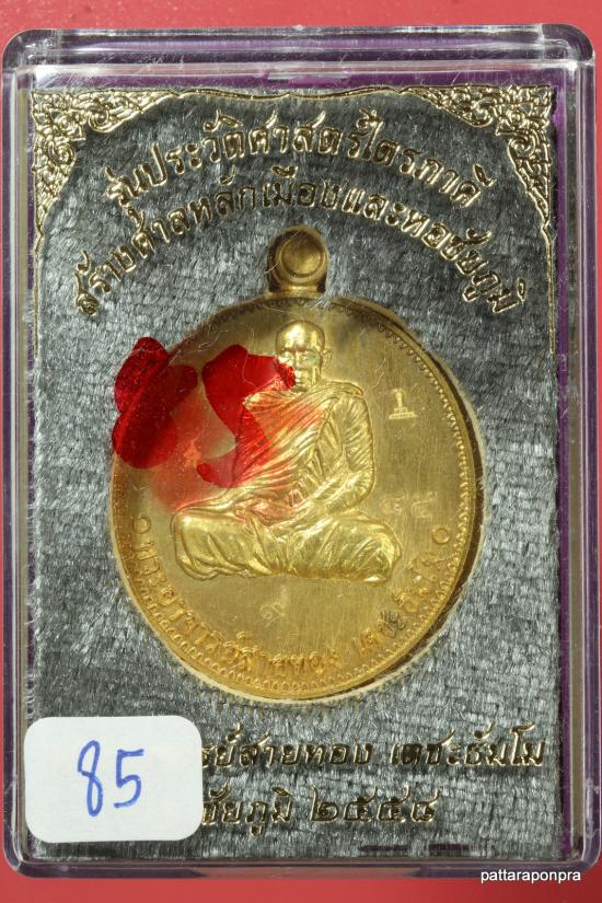 เหรียญหลวงพ่อสายทอง รุ่นไตรภาคี ปี 2558 เนื้อกะไหล่ทอง โค๊ต๙ หมายเลข 85 แยกจากชุดกรรมการ |