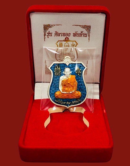 หลวงปู่มหาศิลา ศิลาทองพันล้าน เนื้อเงินลงยา พิเศษ ตอก9 รอบ 1 ใน99 เหรียญ จมูกโด่ง เลข 202กล่องเดิม สวยๆ