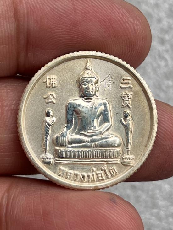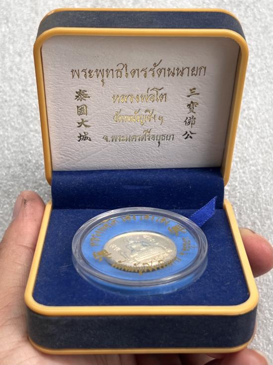 เหรียญเงินขัดเงาหลวงพ่อโต วัดพนัญเชิง อยุธยา เฮง เฮง เฮง สวยเดิมพร้อมกล่อง