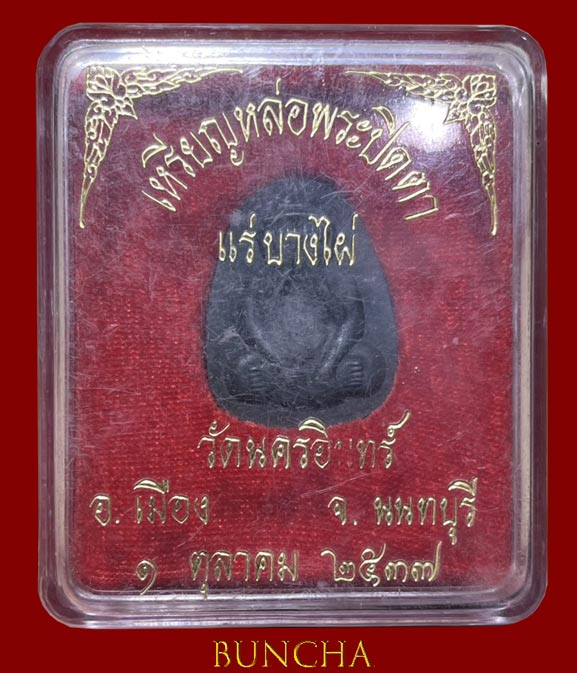 วัดใจ...พระปิดตาแร่บางไผ่ วัดนครอินทร์ นนทบุรี รุ่นแรก พิมพ์ใหญ่ ไม่ตัดปีก ปี2537 มวลสารแร่บางไผ่อันสุดยด สร้างน้อย หายาก กล่องกำมะหยี่เดิมๆครับ.