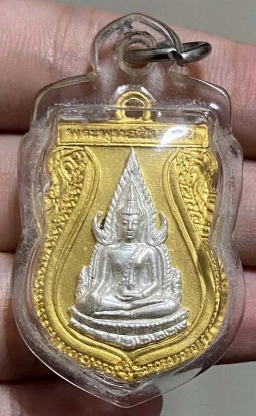 เหรียญพระพุทธชินราช กระไหล่ทอง หน้ากากเงินแท้ สวยมาก เลี่ยมอย่างดี