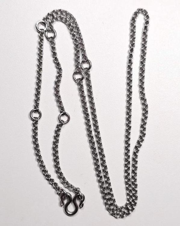 สร้อยแบรน100% ลายห่วงคู่ เบอร์26หนา 2 มิล มือสองใส่พระได้ 7 องค์ ความยาวประมาณ 28 นิ้ว ครับ