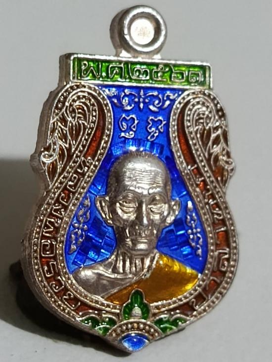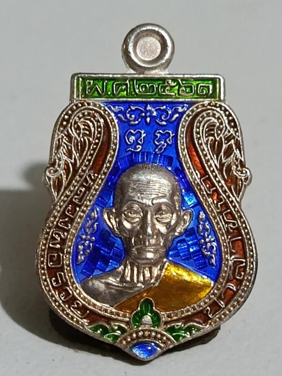 เหรียญ เสมาเล็ก [ เนื้อเงินลงยาแท้ ] รุ่นรวยมหาลาภ หลวงพ่อรวย วัดตะโก อยุธยา ปี 61 ตอกโค๊ตหมายเลข 92 |