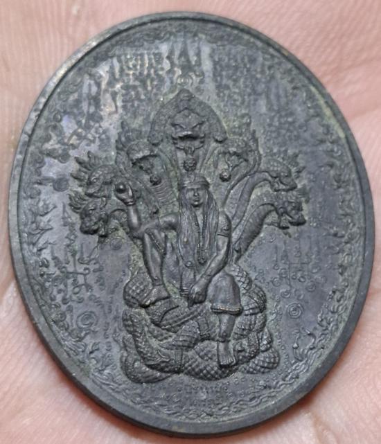 เหรียญ มหายันต์ เทพนาคา หลัง หลวงปู่เทพโลกอุดร อาจารย์หม่อม ไตรภูมิ จัดสร้างปี 2549